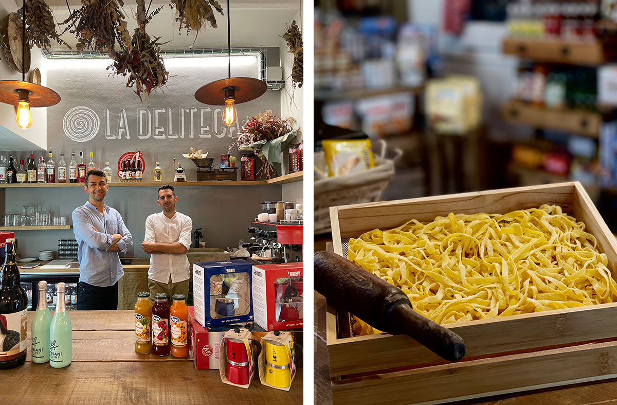 I shop in La Deliteca when I have guests for dinner, because here I can buy everything for a good dinner, which makes most people more than happy. I buy fresh pasta, mortadella with truffle, burrata, crackers with olive oil, red wine, vitello tonnato, lemon tart and pistachio cream (a kind of nutella made from Sicilian pistachios).