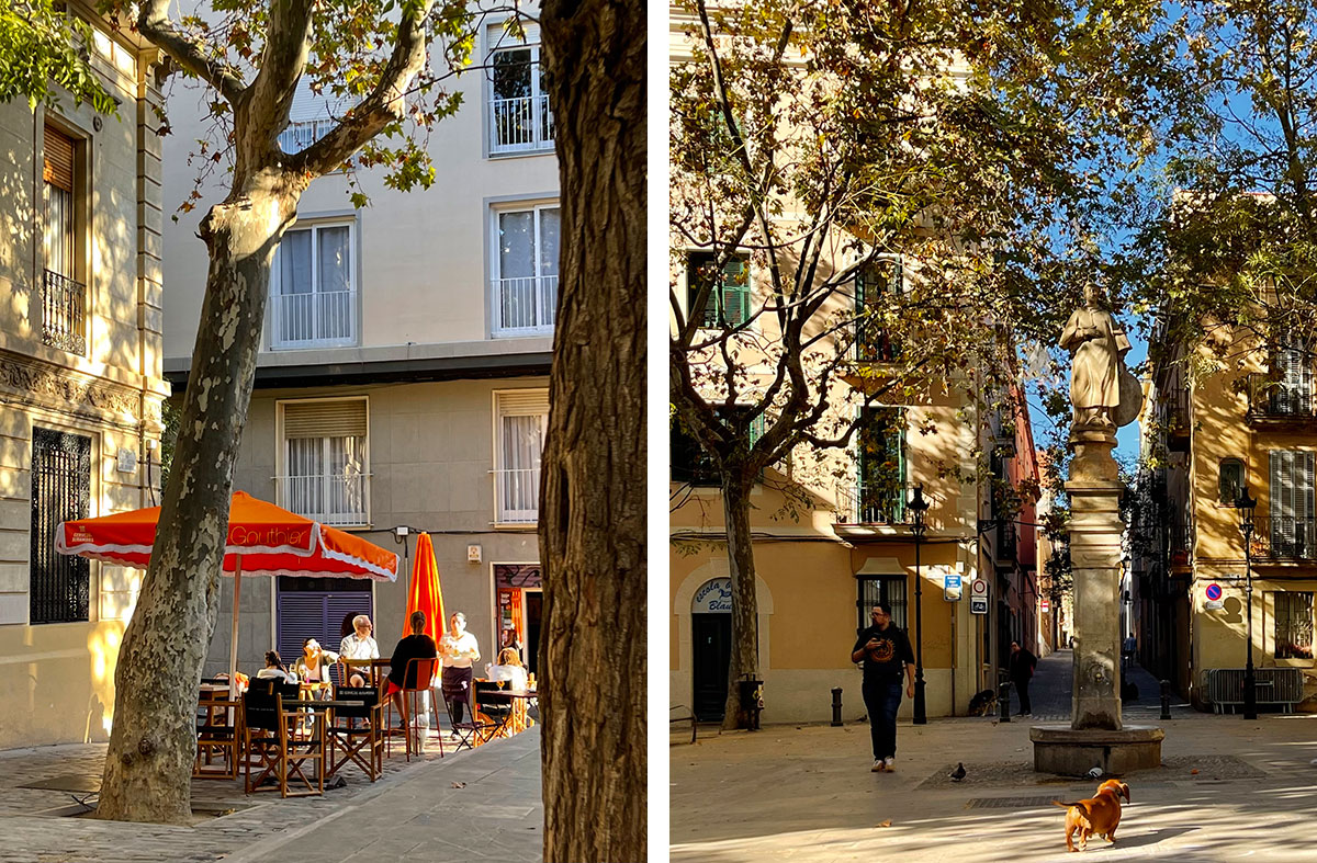 I love the square because it adds so much atmosphere to Sarriá and it is both beautiful and has authenticity. I love the colourful facades and the patina of the houses. Not all are restored. Especially in the morning and afternoon, the square and facades are illuminated with the most beautiful light. In addition to the locals, several of whom were born in the neighbourhood, there are expats like myself and a few tourists. But in a stylish way, we all blend into the local atmosphere.