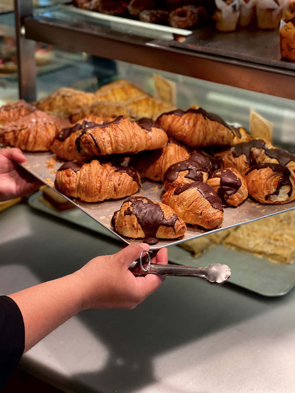 Try the legendary Pop-Eye sandwich with ham, melted Emmental and spinach, featured in several media, café con leche (coffee with milk), butter and chocolate croissant or ensaïmada with whipped cream.