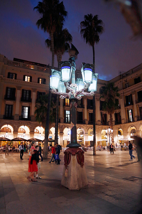 Como arquitecto recién titulado, el Ayuntamiento de Barcelona encargó a Gaudí el diseño de unas farolas que iluminaran con gas las calles de la ciudad. Gaudí diseñó dos modelos: uno con tres ramas y otro con seis. En un principio, las farolas de Gaudí iban a colocarse por toda la ciudad, pero sólo se inauguró una de seis brazos en la plaza Real en 1879.