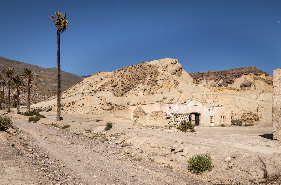 Quizá me influya el hecho de que, durante décadas, varios directores de cine también han reconocido las cualidades cinematográficas de la zona más árida de Europa, el Desierto de Tabernas, en Almería. El sol se cuece desde un cielo despejado mientras yo, junto con dos frikis del cine locales, nos dirigimos al mundialmente famoso semidesierto en un 4×4.