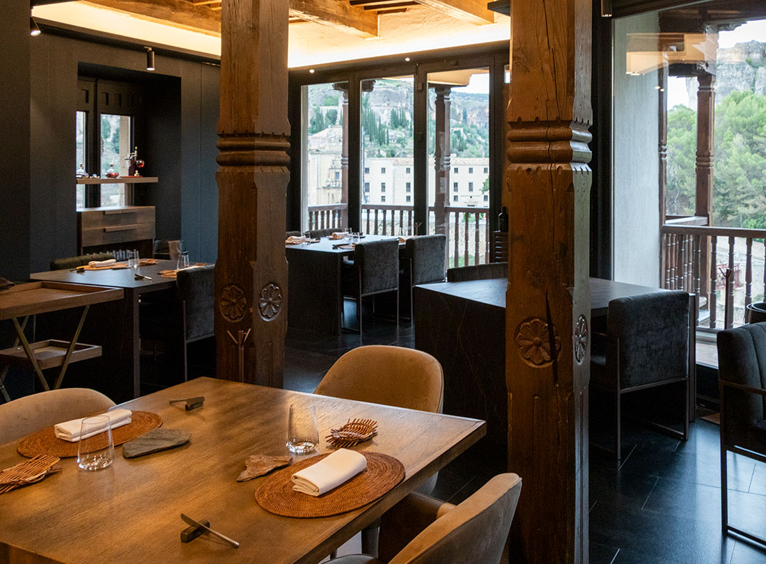 Den lille restaurant, med plads til 18 gæster, er indrettet med sorte vægge, gulve og møbler, så man føler, man sidder i en lille hule, hvorfra der er fantastisk udsigt ud over den stejle klippekant ned i Huécar-kløften og San Pablo-broen.