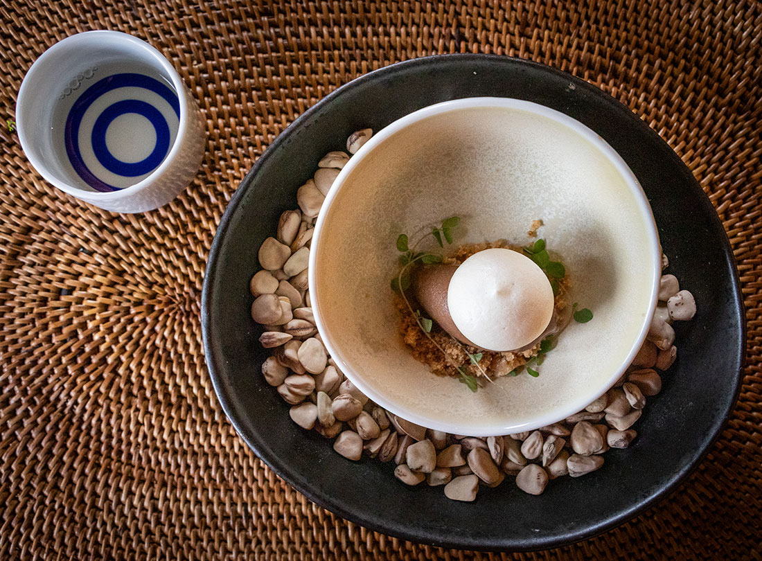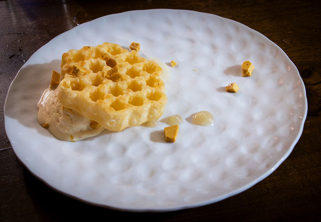 Restauranten ligger i hyggelige kælderlokaler i et aristokratisk stenpalæ, og her er både hyggeligt og intimt, ligesom tjenerne balancerer opmærksom service og diskretion til perfektion.