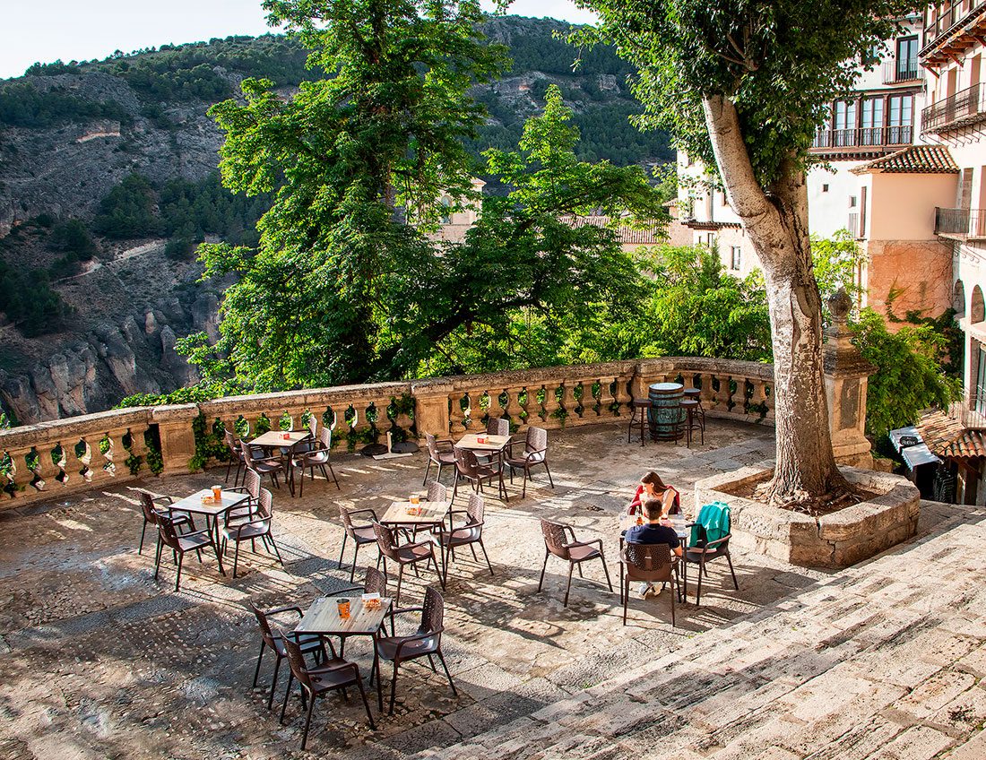 Fra den romantiske terrasse i den gamle bydel kan du nyde udsigten til kirkespir med landskabet mod Júcar-floden som bagtæppe. Caféen byder på tapas, salater og pizza.