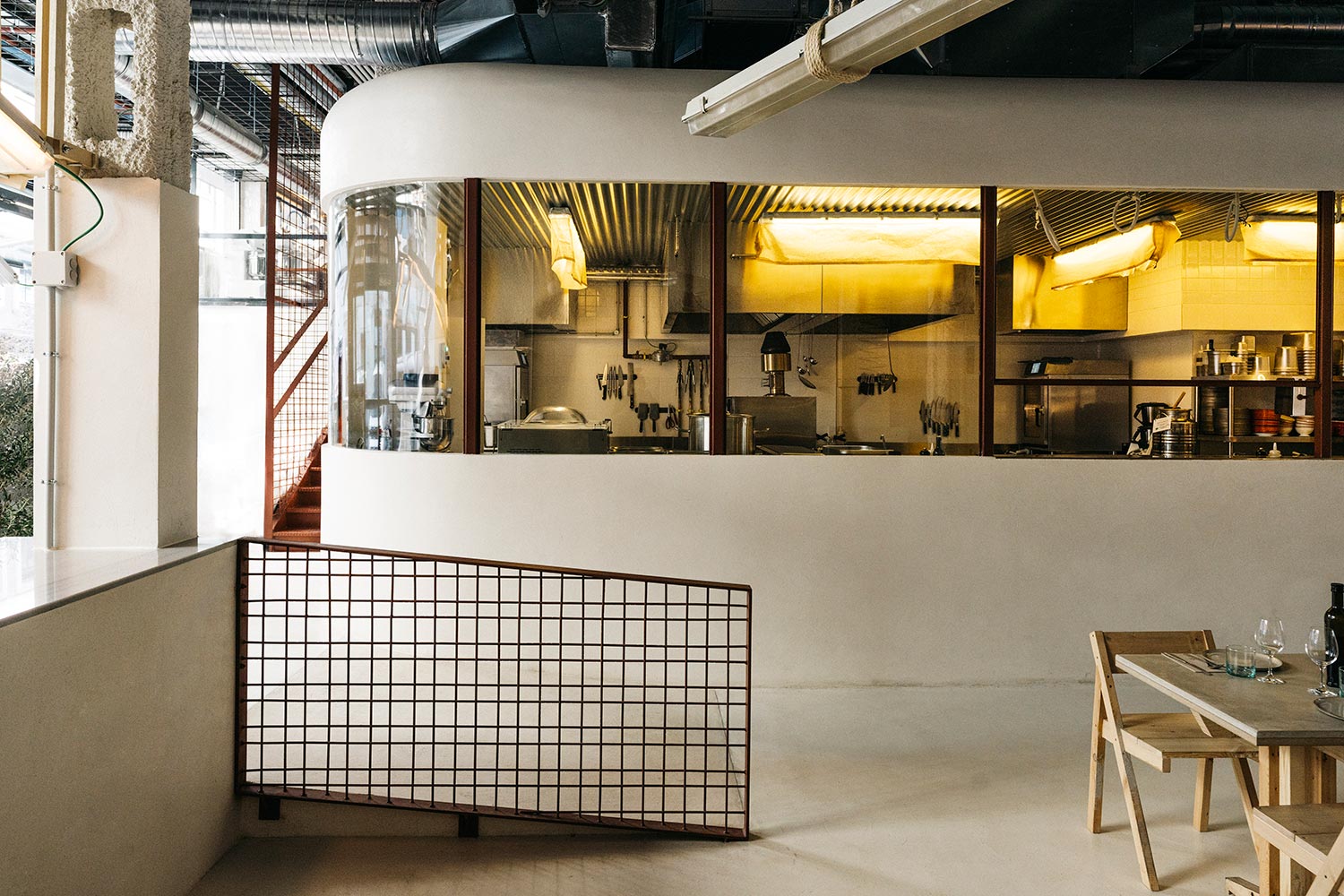 Hele indretningsprocessen på den bæredygtige restaurant i Madrid har været en stor øvelse i genanvendelse. Filosofien er, at alt skal være funktionelt og enkelt. Her er ingen overflødig pynt.